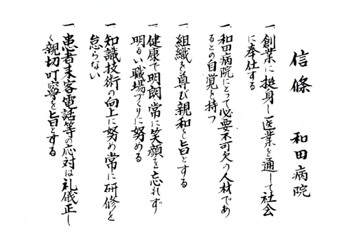 - 健全な経営と人の和を通じて、病院の発展拡充を図る。
