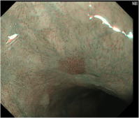 この検査は通常の内視鏡を口から挿入して操作ボタンを切り替えるだけで簡単に観察ができ当院でも何例かの早期がんを発見しています。